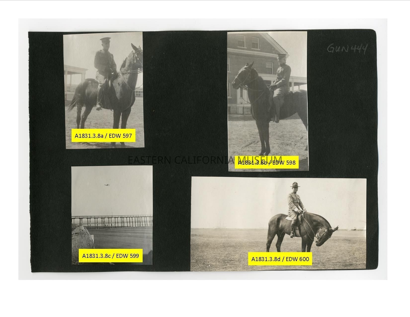 A1831.3.8d: Exterior photo of a man in military uniform on a horse (cavalry?).Collection