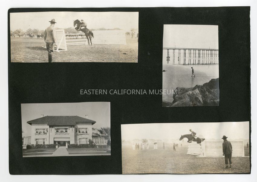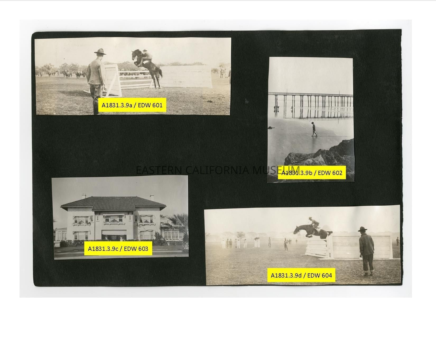 A1831.3.9d: Exterior photo of a man in military uniform on a horse (cavalry?) jumping over an obstacle.Collection
