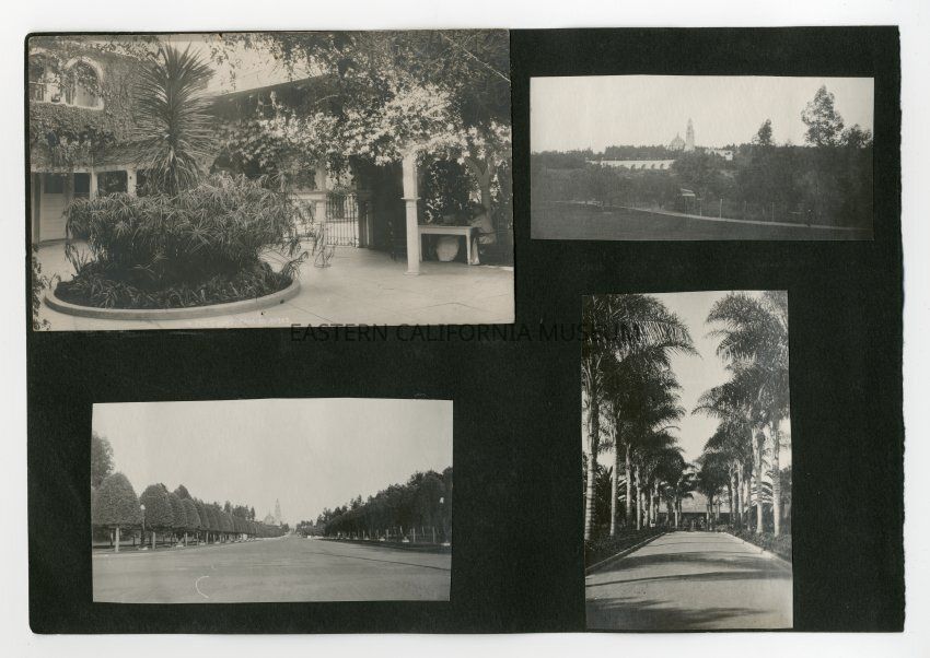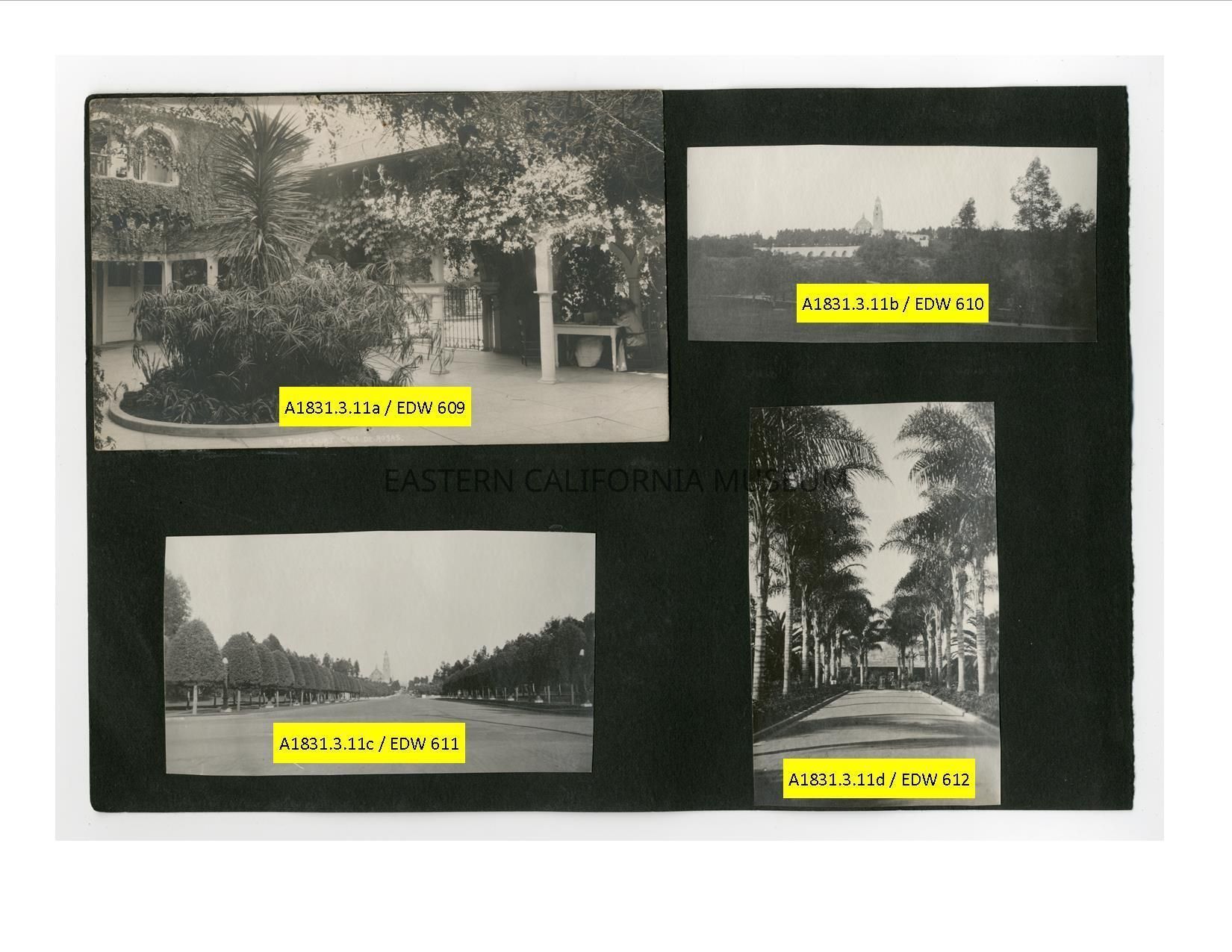 A1831.3.11d: Exterior photo of a paved road lined by palm trees leading to a building.Collection