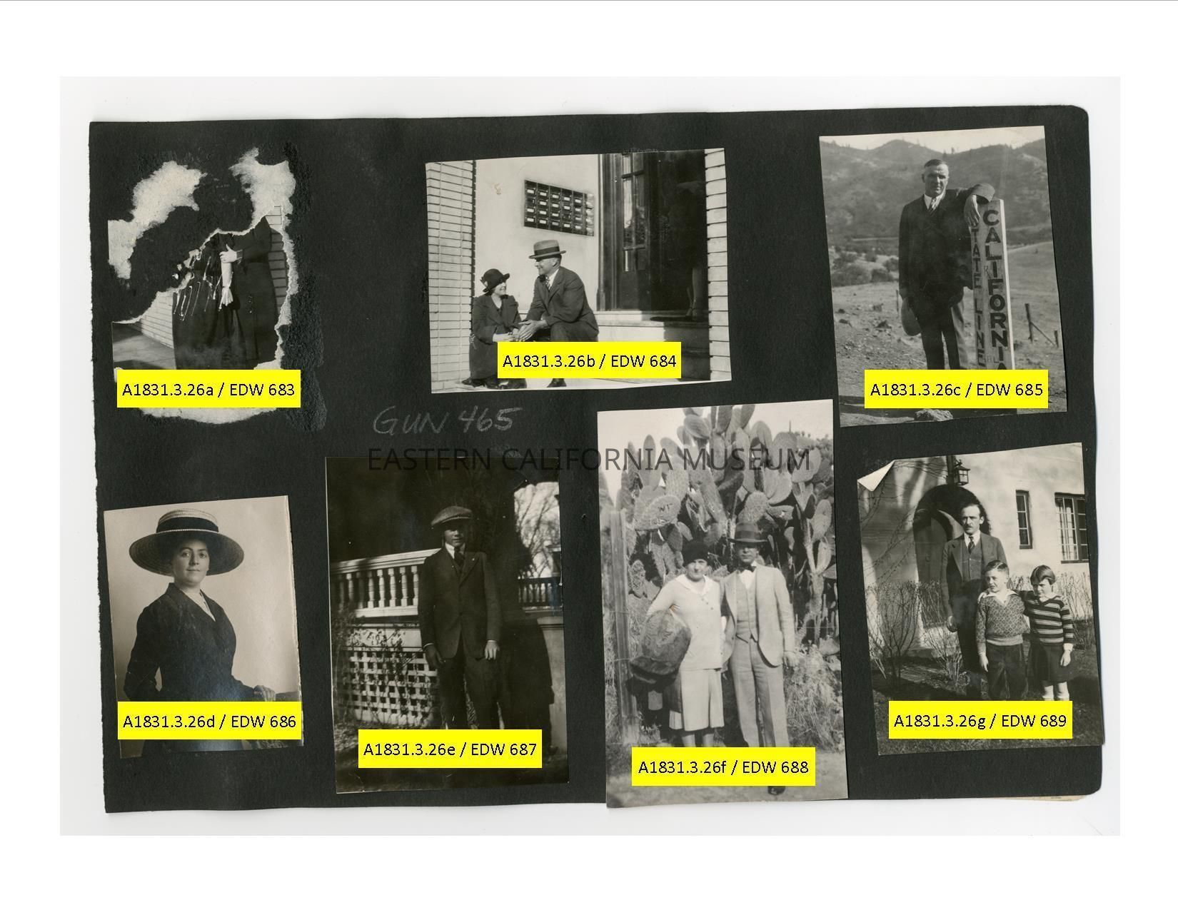 A1831.3.26g: Exterior photo of a man with two young children in front of what appears to be an adobe home. Has arched doorway.Collection