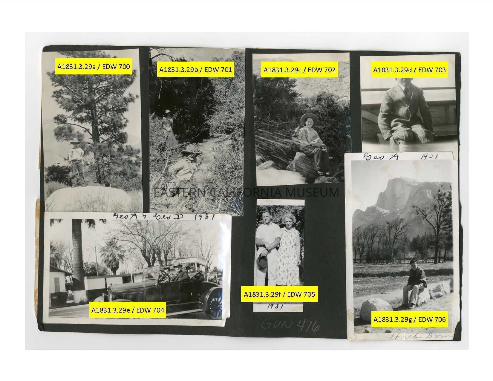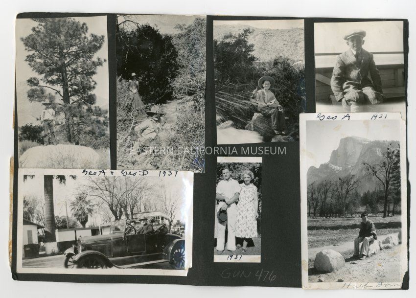 A1831.3.29g: Photo of a young man sitting on a rock in front of Half Dome in Yosemite. He is identiifed as George A. and the photo was taken in 1931.Collection