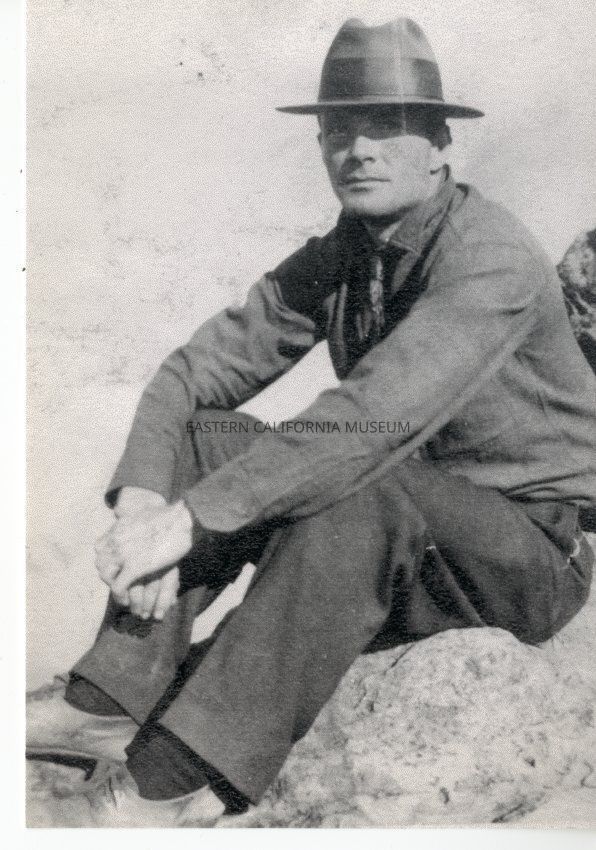 Norman Clyde sitting on rock wearing iconic hat.