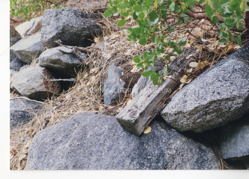 Color. Piled rocks and 4' x 4' logs, evidence of the logging operation in the Sawmill Creek area.