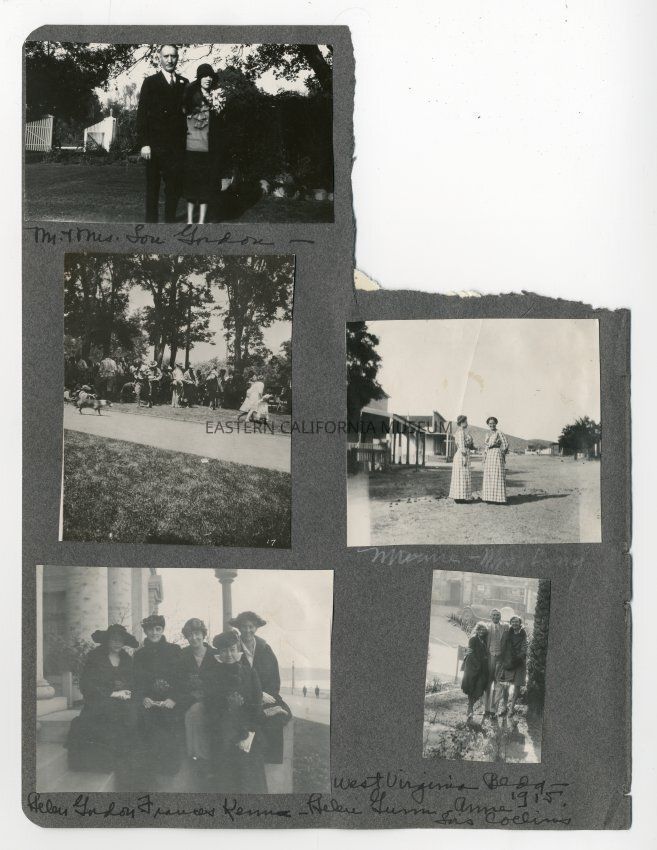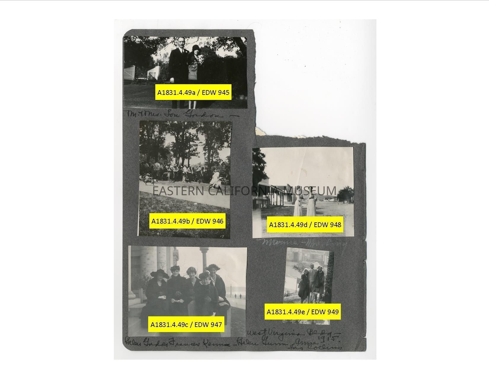 A1831.4.49c: Exterior photo of five women sitting on the stoop of a building. It looks like the ocean is across the street in the background. It is identified as the West Virginia Building, 1915. Helen Gordon, Frances Kenna, Helen Gunn, Anne, Lois Collins.