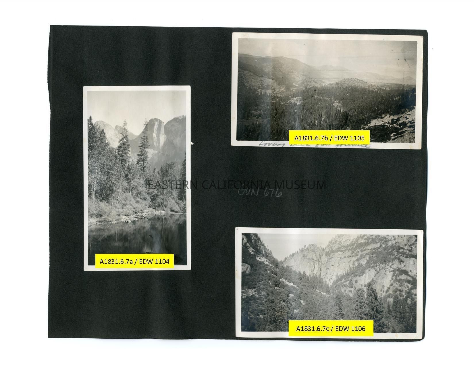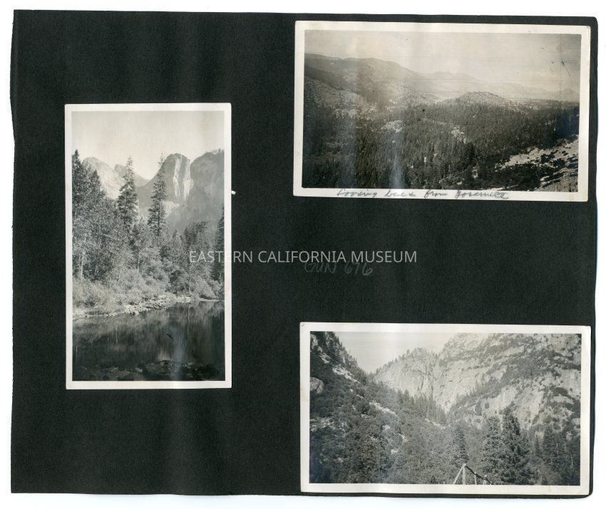 A1831.6.7b: Photo of a mountainous landscape. It is labeled, "Looking back from Yosemite."