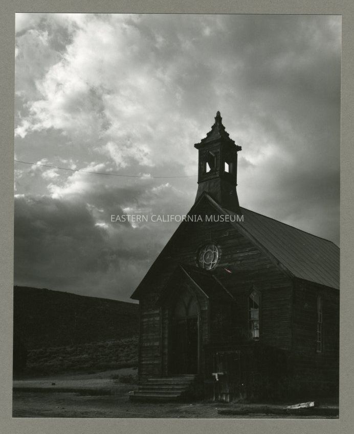 Mounted photo of the church at Bodie.