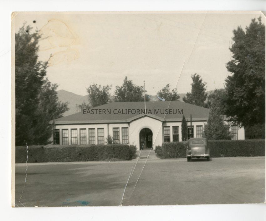 Handwritten in black ink on reverse: Circa 1944. Jr. H.S. [Junior High School] Independence, CA where mom taught--that's her '36 Chevy.Photograph Details