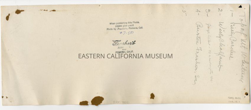 Stamp on back: "When publishing this photo please give credit / Photo by Frasher's Pomona, Cal. #7-550 / Frasher's June Lake and Pomona, Calif."