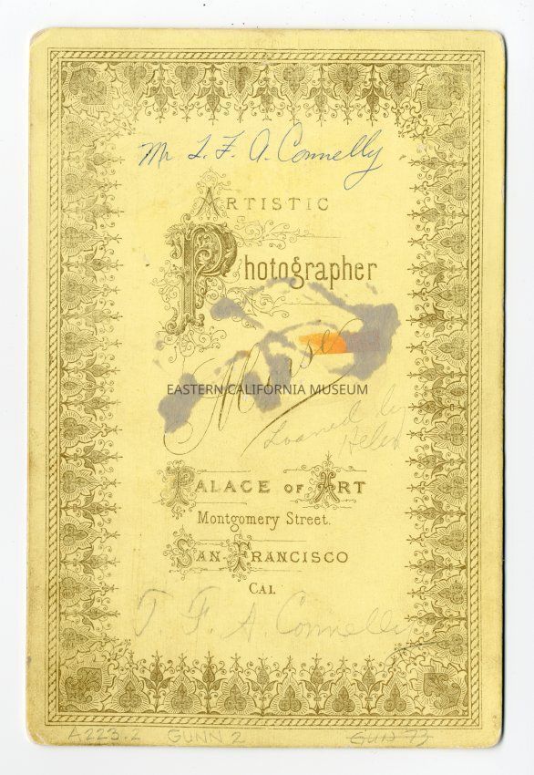 Mounted photograph of T. F. A. Connelly. Photographed by Morse of San Francisco. His whole name is Theophilus Fabrious Augustus Connelly.