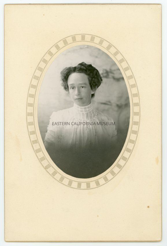 Mounted studio portrait of Alice Tate, who was the postmaster in Lone Pine from 1913 to 1947 (34 years of service).