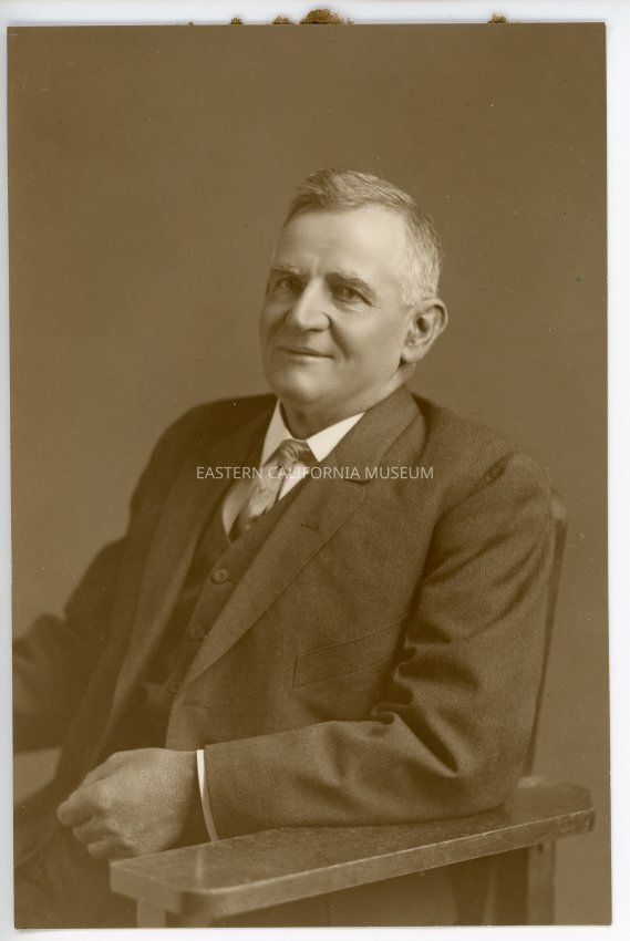 Photo of a man sitting in a wooden chair. Writing in pencil on back: "Julius Roeper."