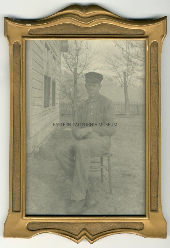 Framed photo of a seated young man, possibly a member of the Strohmeyer family. The framing was done by Howland & Dewey Co., Eastman Kodak Company of Los Angeles.Collection