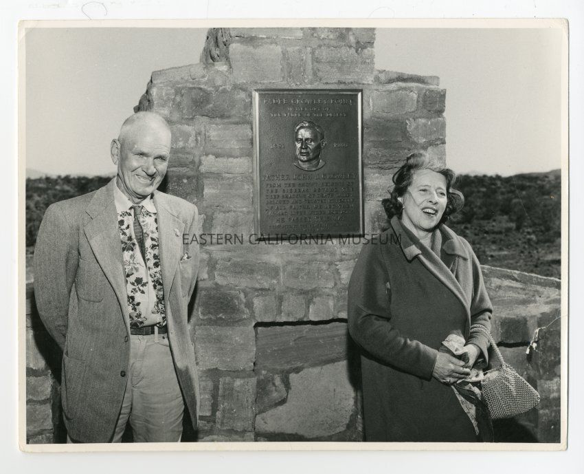 Photograph of a man and a woman standing in front of a monument and plaque at Padre Crowley Point.