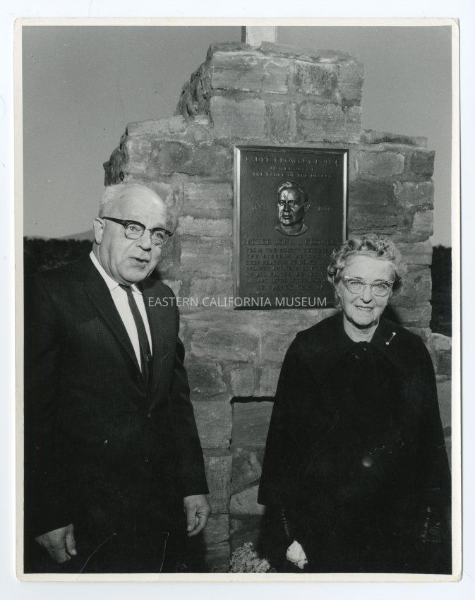 Photograph of a man and a woman standing in front of a monument and plaque at Padre Crowley Point.