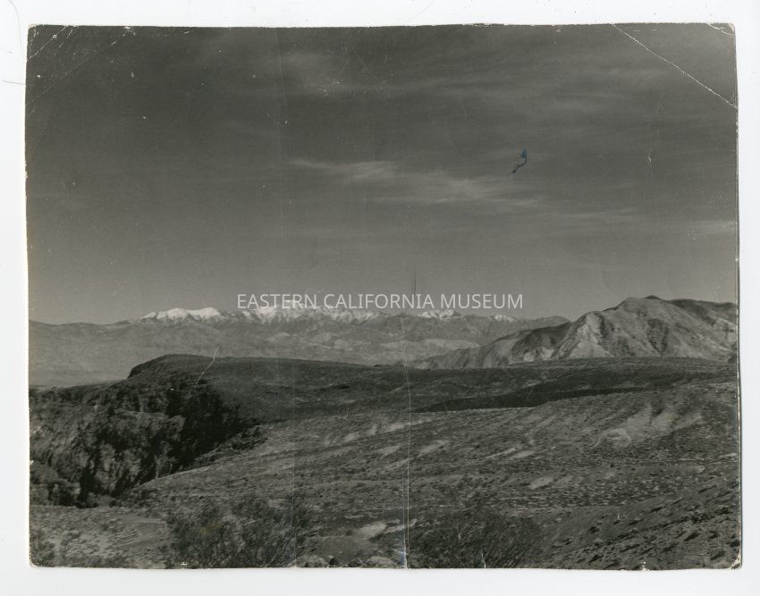 Written on reverse: "Padre Crowley Point, Rainbow Canyon, entering the Panamint Valley, taken in 1944. Telescope Peak in the Panamint Range in background."Collection