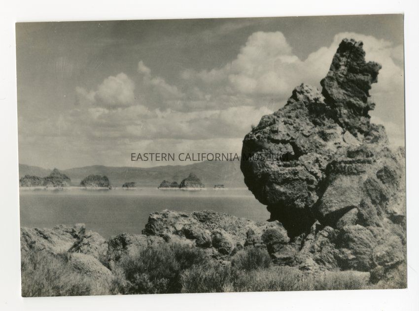 The back is stamped with "Photo by J. S. Lawton / San Francsico" and also "Collection of James E. Boynton" stamp. Written in ink on reverse is "Pyramid Lake California and Nevada."Collection