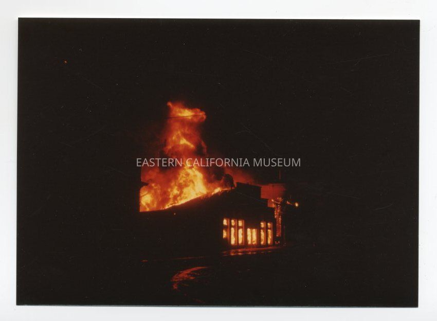 Color photograph of a fire in Independence on February 22, 1963. The fire burned the Independence Hotel and building next door (formerly Miller and Jobes Garage).Collection