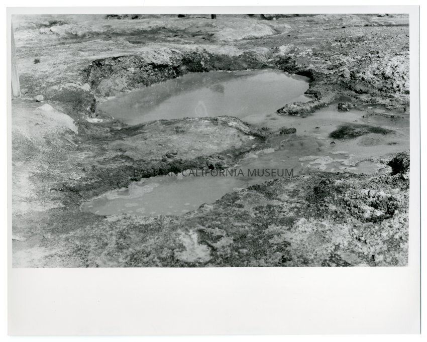 Black and white print of mud pit or hot spring. Likely Coso Hot Springs region. On reverse: "4453"