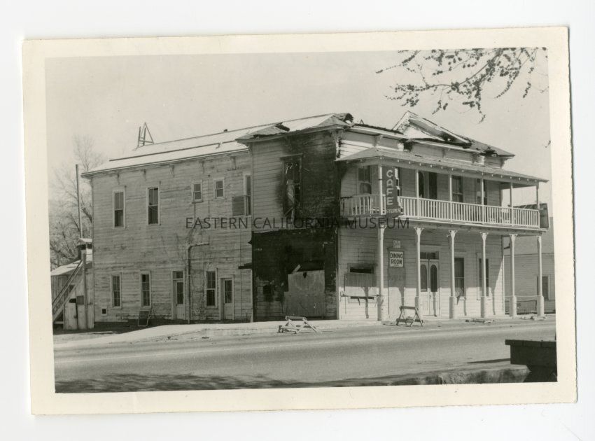 Handwritten on reverse: Old Independence Hotel after it burnt in 1962, by Dorothy C. Cragen.
