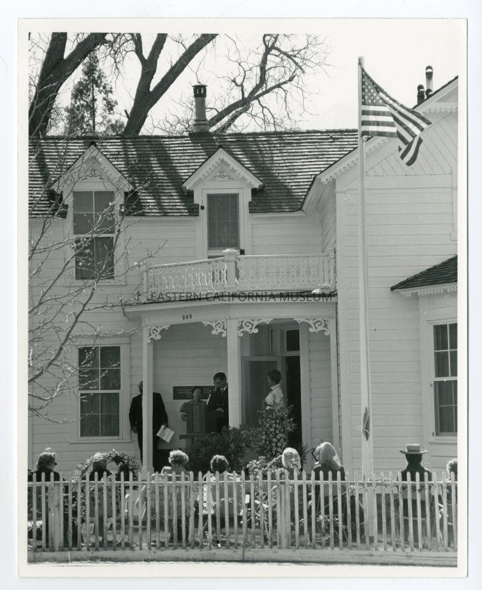 Handwritten on reverse: Commemoration of March 26, 1872 earthquake 100 yrs. later at Commander's House. Pageant written by Dorothy C. Cragen, director 10 yrs. of E. Calif. Museum.