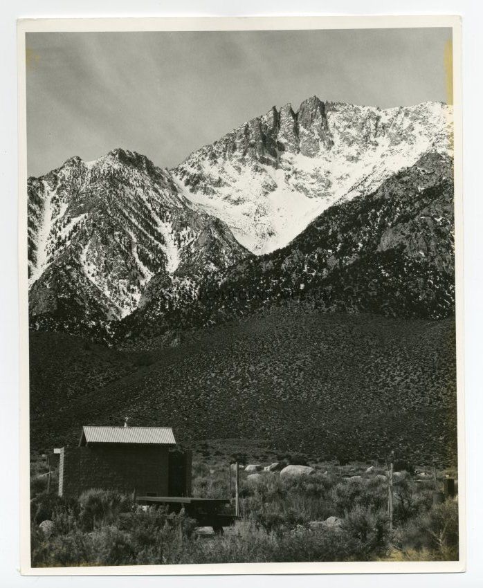 Photo of Goodale Creek campground with Sierra Nevada mountains looming in the background.