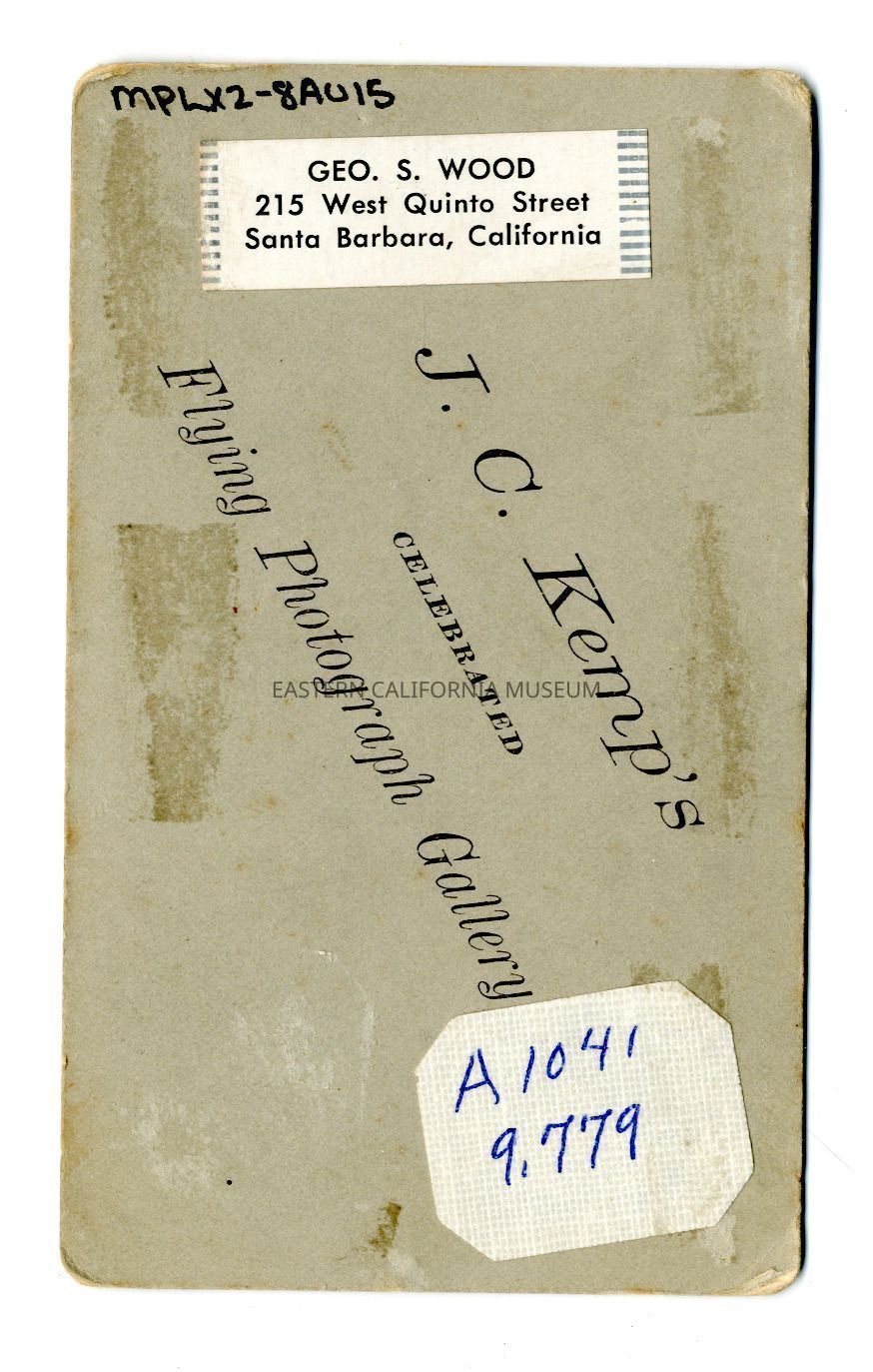 A mailing label for George S. Wood's Santa Barbara residence is affixed to reverse.Collection