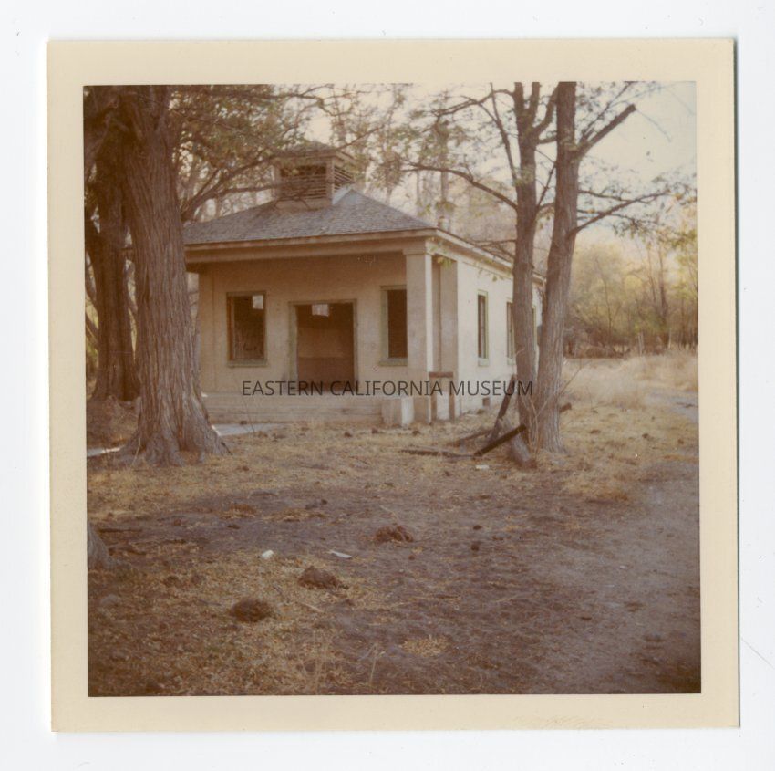 Small color photo of the old schoolhouse at Fort Independence where Ada Bell taught. A faint penciled note on the back says, "Milton School. School that replaced blown [down]."Collection