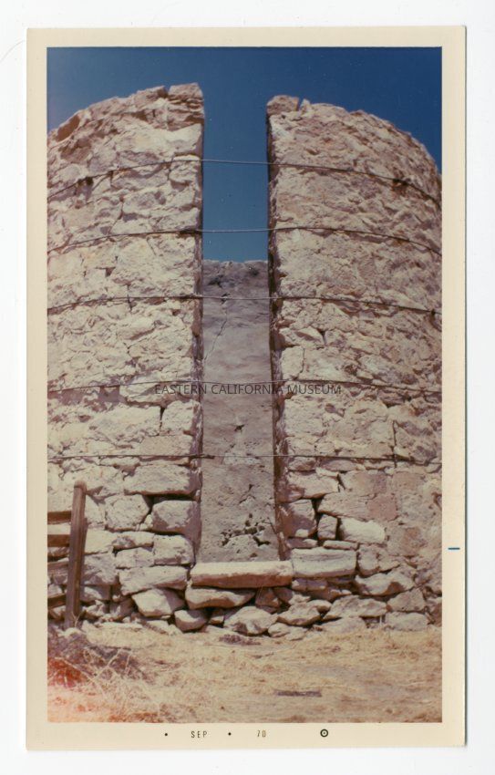 Back of photo indicated that the silo is on the former Arcularius Ranch northwest of Bishop. The silo was on the Schober Ranch, leased from the City of Los Angeles, when it was knocked down by LADWP.