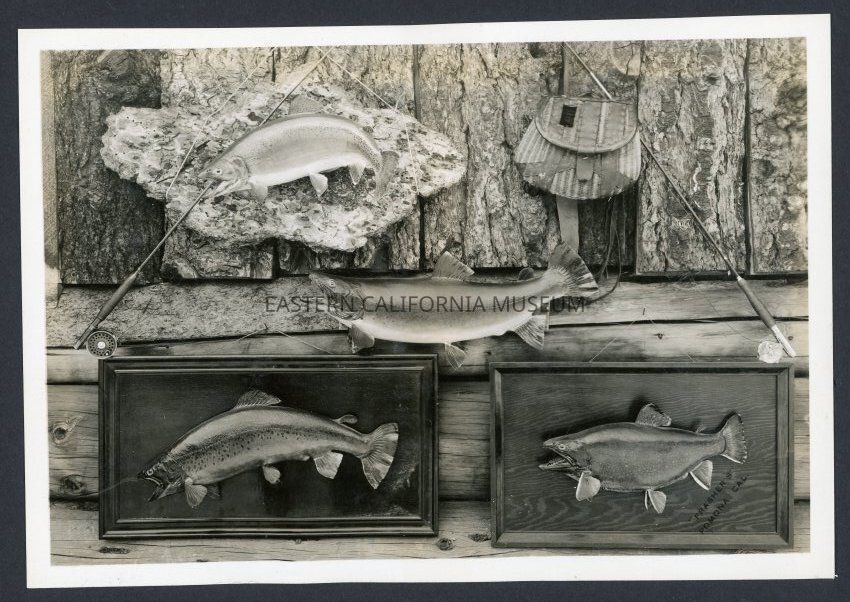 [No label, and it seems to have been skipped in the inventory.] Frashers Pomona Cal. [No number] Photo is of four mounted fish, two fishing poles, and a creel.