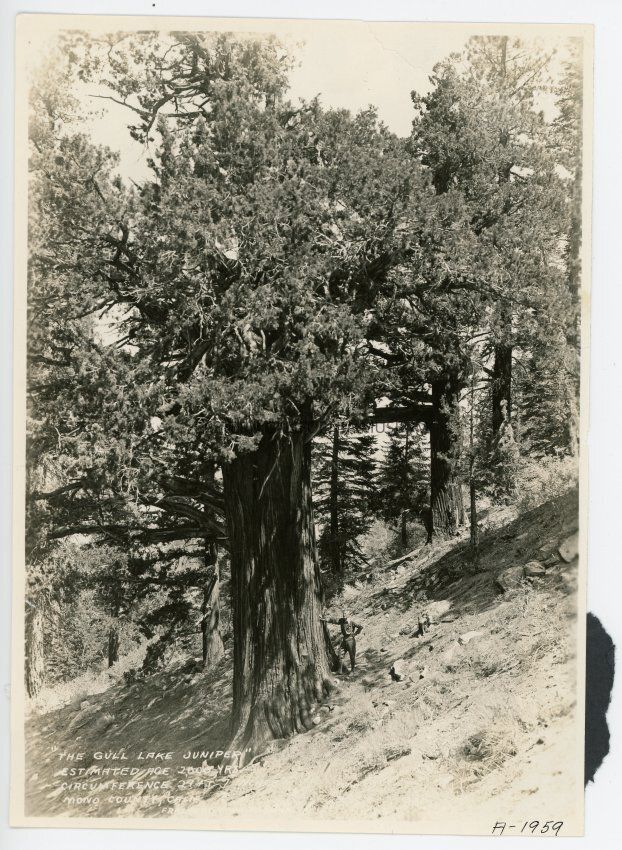 "The Gull Lake Juniper" Estimated Age 2,000 Yrs. Circumference 29 Ft. 7 Inches Mono County Calif.