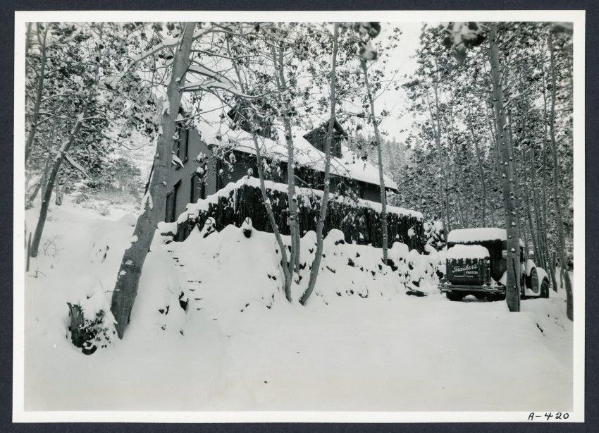 [No label, but it is described in the inventory as "Car cabin in winter."] [No label] A-420 The sign on the trunk says, "Frasher's Photos Pomona Calif."