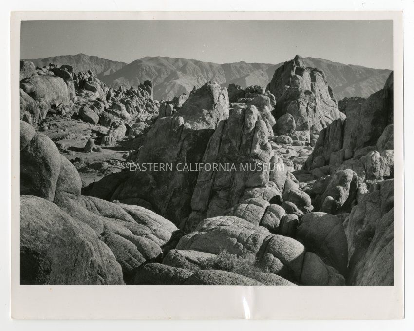 Photo of the Alabama Hills out of Lone Pine. Label on reverse: Alabama Hills out of Lone Pine.