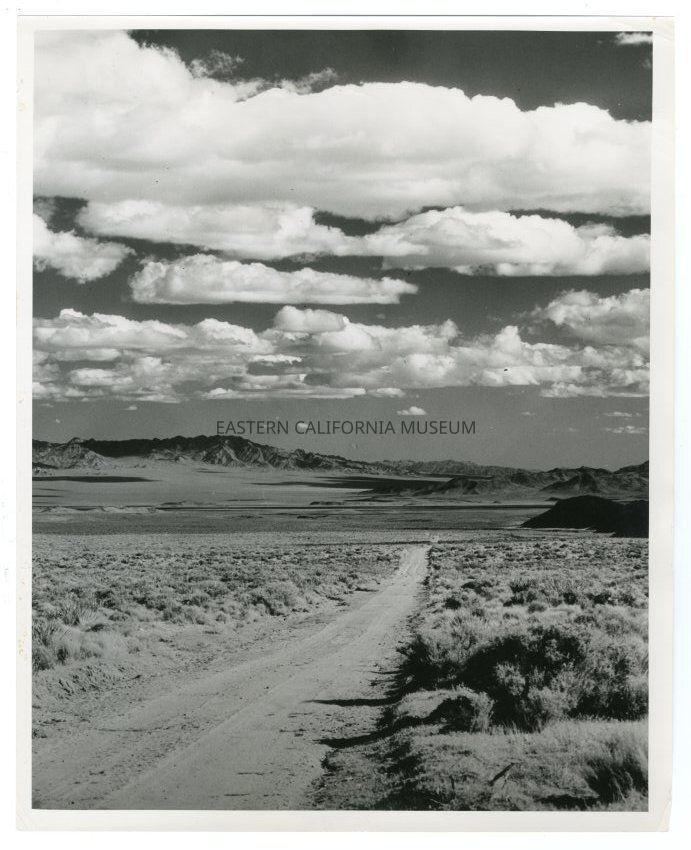 Label on reverse: Road to Death Valley in 1929. Between Trona and Emmigrant Pass, Slate Mountains in distance.