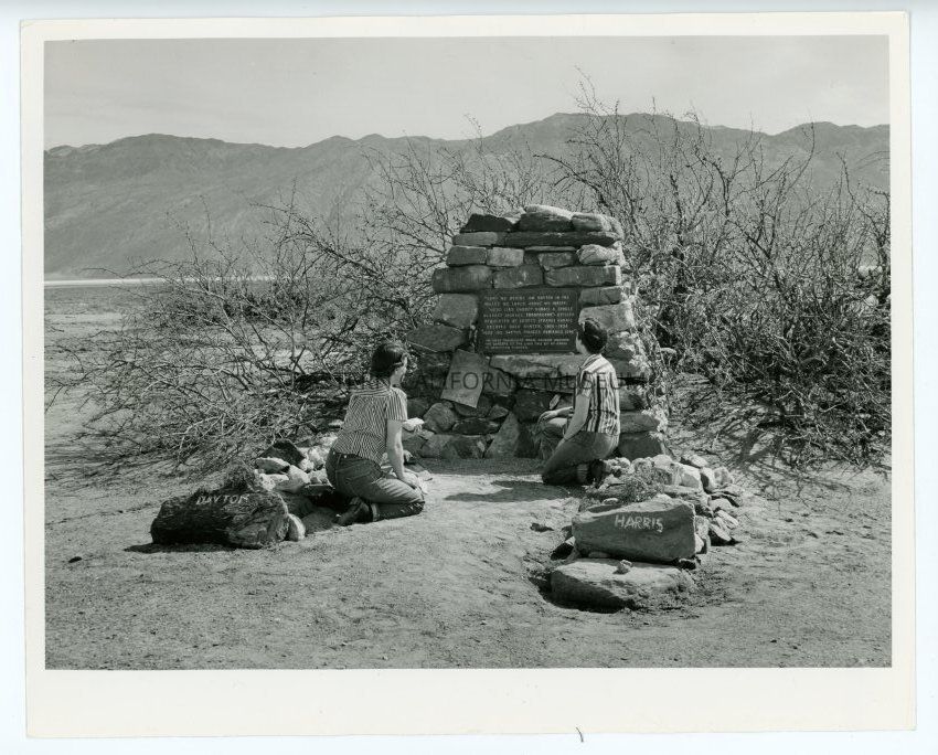 Label on reverse: Monument marking graves of James Dayton and Shorty Harris near Eagle Borax, D.V. [Death Valley], 1956.