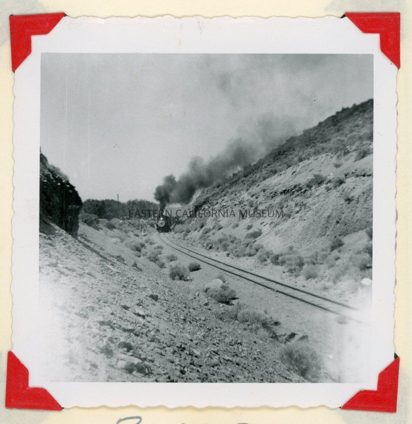 Photo of Southern Pacific engine #9 coming around the Tinnemaha Cut on 05/30/1956. Photo taken by W. P. Payne.