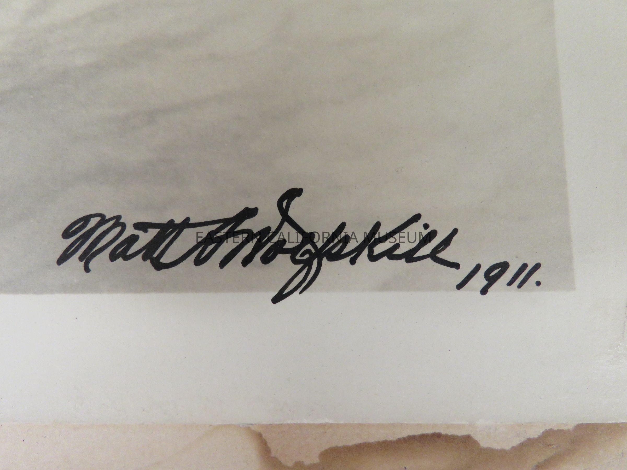 Photo of Agnew Pass, Gem Lake, and Mono Lake. Signed by Matt A. Wolfskill, 1911. Same photo as 1993.45.49.