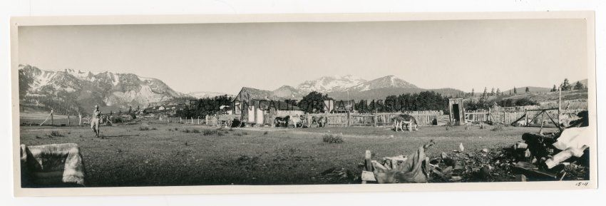 This photo was taken during a trip from the Round Valley area via Mammoth, Devils Postpile, Tioga Pass, and Tuolumne Meadows to Hetch Hetchy Valley. The trip back was via Mono Pass and Bloody Canyon. This location may be Old Mammoth, Mt. Tom, Wildasinn's Hotel/Store.