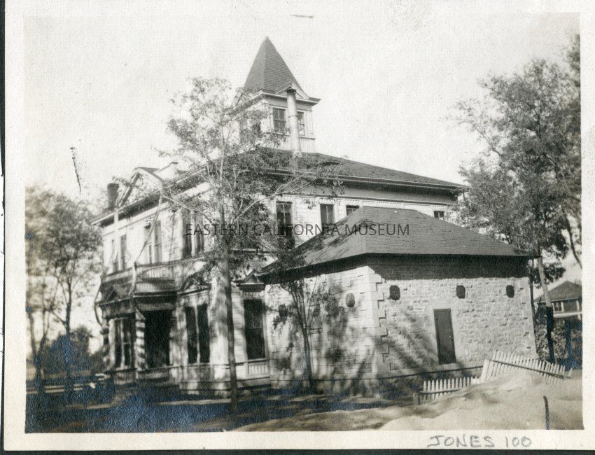 The third Inyo County Courthouse. The stone structure beside the courthouse is the jail [maybe the vault?].