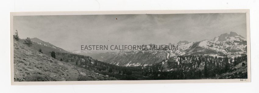 This photo was taken during a trip from the Round Valley area via Mammoth, Devils Postpile, Tioga Pass, and Tuolumne Meadows to Hetch Hetchy Valley. The trip back was via Mono Pass and Bloody Canyon. This location may be Mt. Ritter, Banner Peak.Made/Created