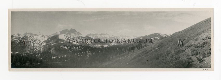 This photo was taken during a trip from the Round Valley area via Mammoth, Devils Postpile, Tioga Pass, and Tuolumne Meadows to Hetch Hetchy Valley. The trip back was via Mono Pass and Bloody Canyon. This location may be Mt. Ritter, Banner Peak.Made/Created