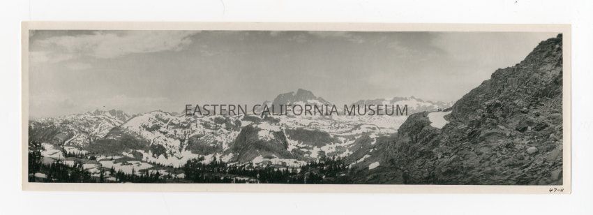 This photo was taken during a trip from the Round Valley area via Mammoth, Devils Postpile, Tioga Pass, and Tuolumne Meadows to Hetch Hetchy Valley. The trip back was via Mono Pass and Bloody Canyon. This location may be Mt. Ritter, Banner Peak.Made/Created