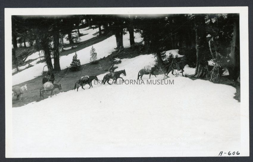Frasher Party with Sierra Saddle Livery Breaking the Trail Over Agnew Pass Frashers Foto Pomona A-606 This photo seems to have been skipped in the inventory.