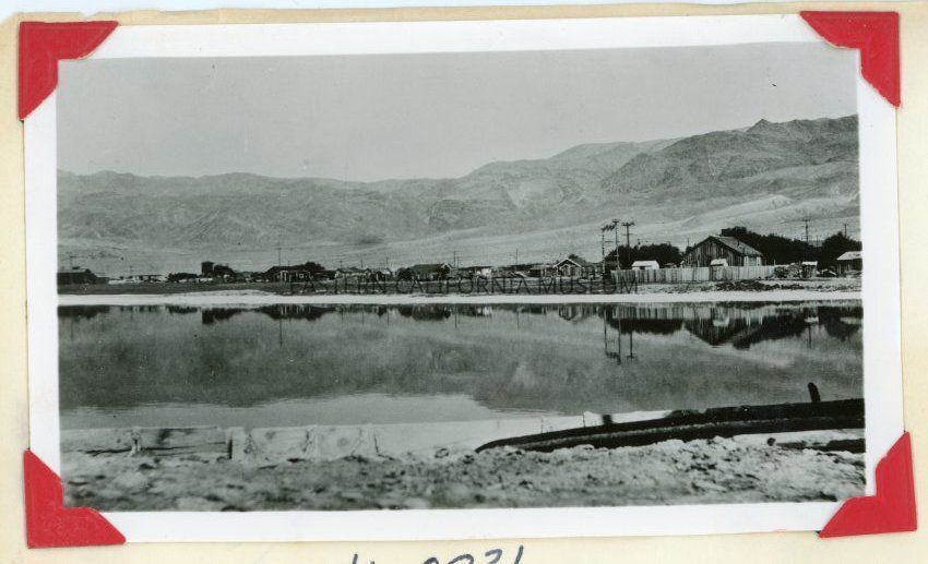Photo taken from Keeler looking north from the docks on Owens Lake. Photo copied courtesy of L. Hilderman in 1959.