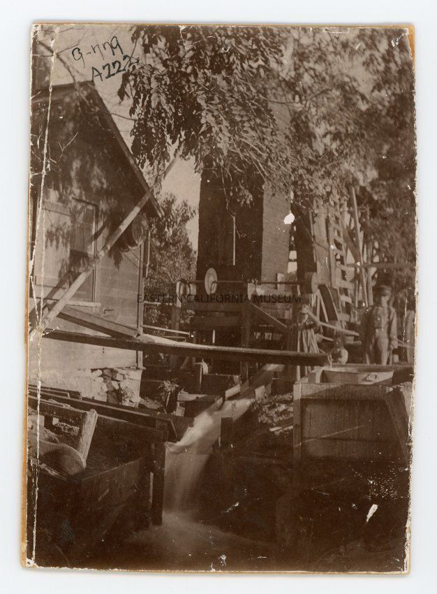 Written in ink on reverse: Dairy house and water wheel on W. D. Roberts ranch. Loaned by Ettie B. H. Thorington, Bishop, Calif. Jan. 29, '31.Collection