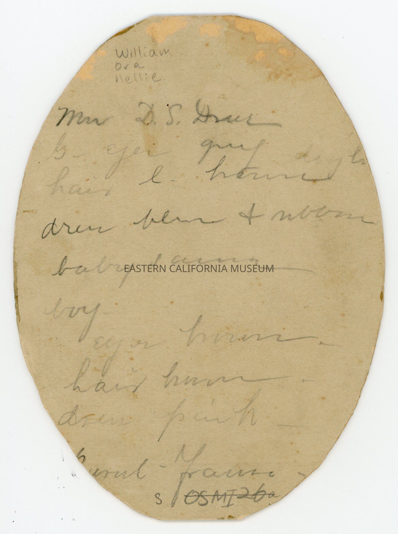 There are extensive pencil notations on the reverse that appear to be written to either the photographer (D. S. D---r) or artist with instructions for the colors of the children's eyes, hair, and clothing.Collection