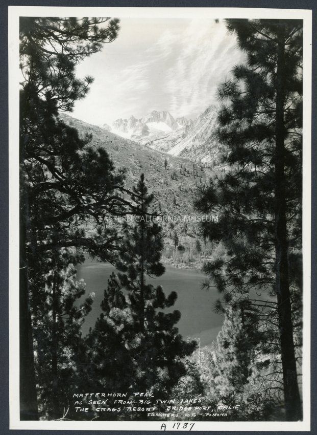 Matterhorn Peak as seen from Big Twin Lakes the Crags Resort Bridgeport Calif. Frashers Foto Pomona A-1737