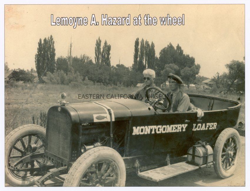 A computer-edited description in the top center of the photo says, "Lemoyne A. Hazard at the wheel."