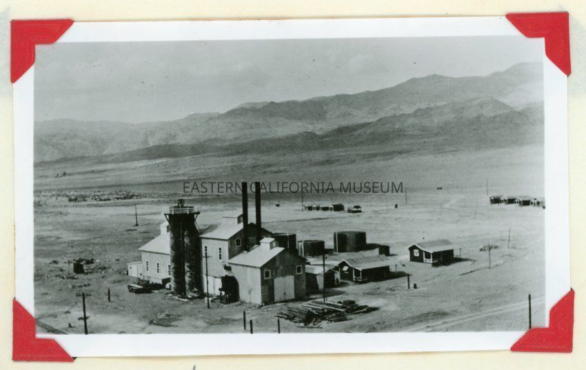Photo of the Inyo Development Company's soda mill, located south of Keeler, about 1920. Photo copied courtesy of L. Hilderman in 1959.