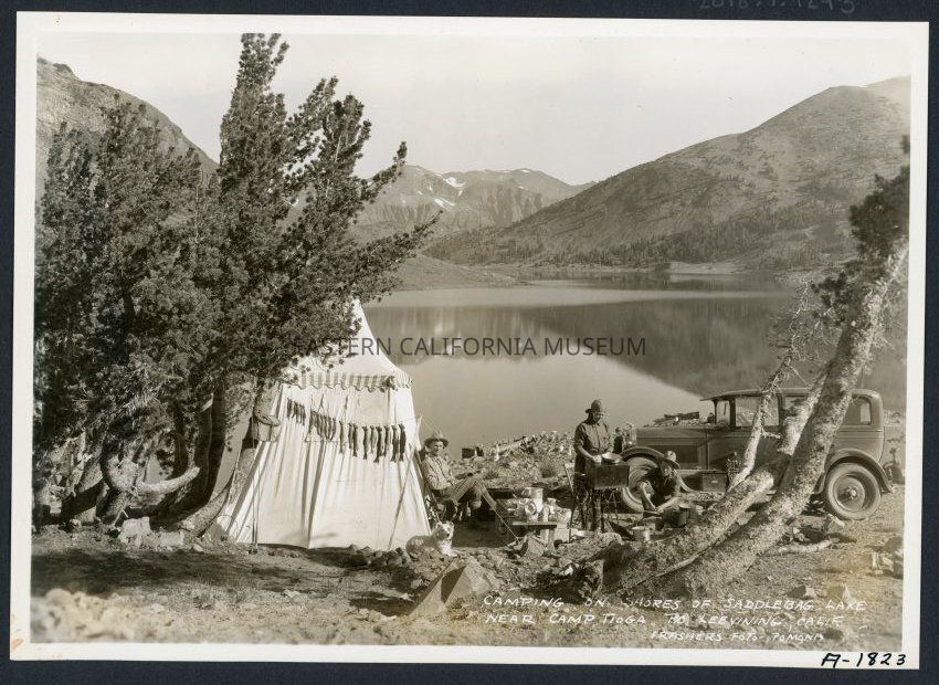 Camping on Shores of Saddlebag Lake near Camp Tioga P.O. Lee Vining Calif. Frashers Foto Pomona A-1823