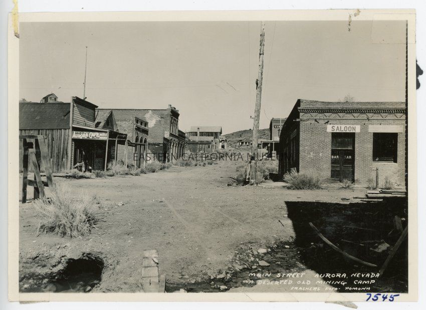 Main Street Aurora Nevada A Deserted Old Mining Camp Frashers Foto Pomona 7545 This photo is loose, but appears to have been torn out of an album. It is printed on Velox paper.